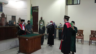Ketua Pengadilan Negri Kelas 1A Tanjungkarang Timur Pradoko SH MH melantik Baharudin Naim SH MH sebagai Hakim Ad Hoc Tipikor di PN kelas 1A Tanjungkarang ,acara di gelar Di ruang sidang Utama PN kelas1 A Tanjungkarang, Selasa (15/6/2021.)